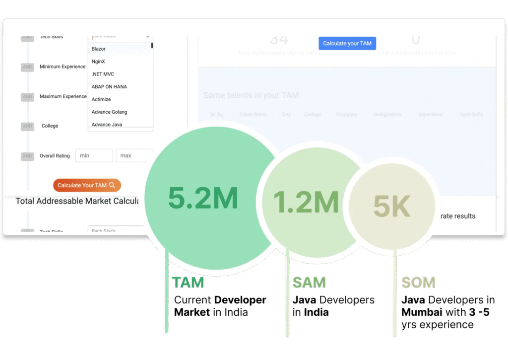In today’s fierce competition, companies need to optimize their tech talents to drive growth and achieve success. Enter Mithril, a powerful solution that enhances the TAM SAM SOM framework. Leverage our dashboard to gain valuable insights into mapping the market size for the technologies you need.