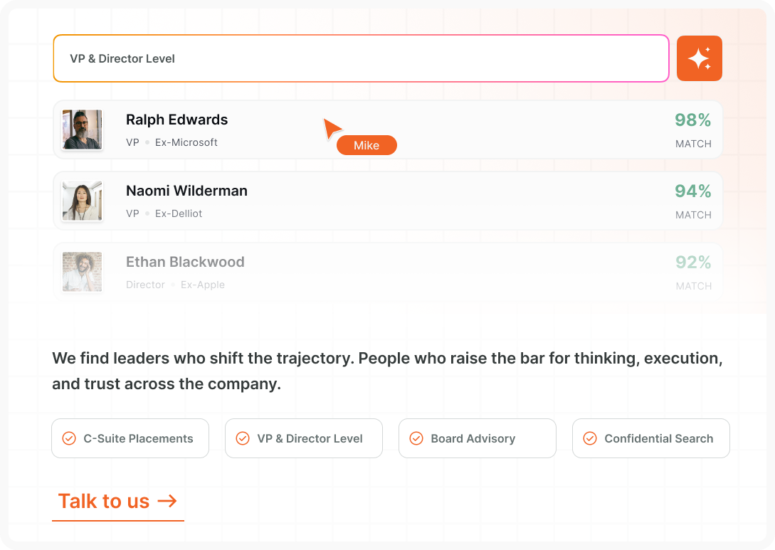Evaluates for clarity, adaptability, and leadership lift — not just experience.